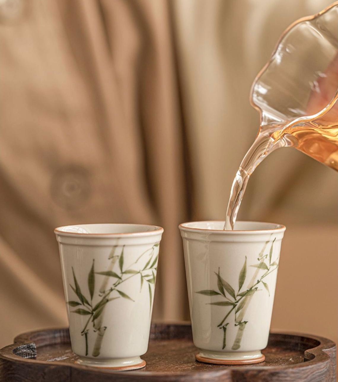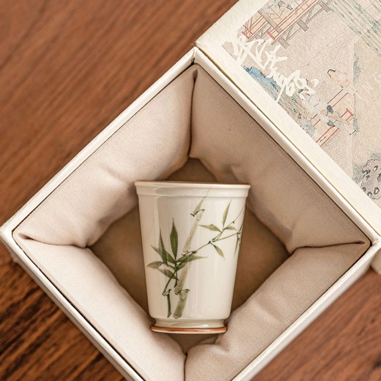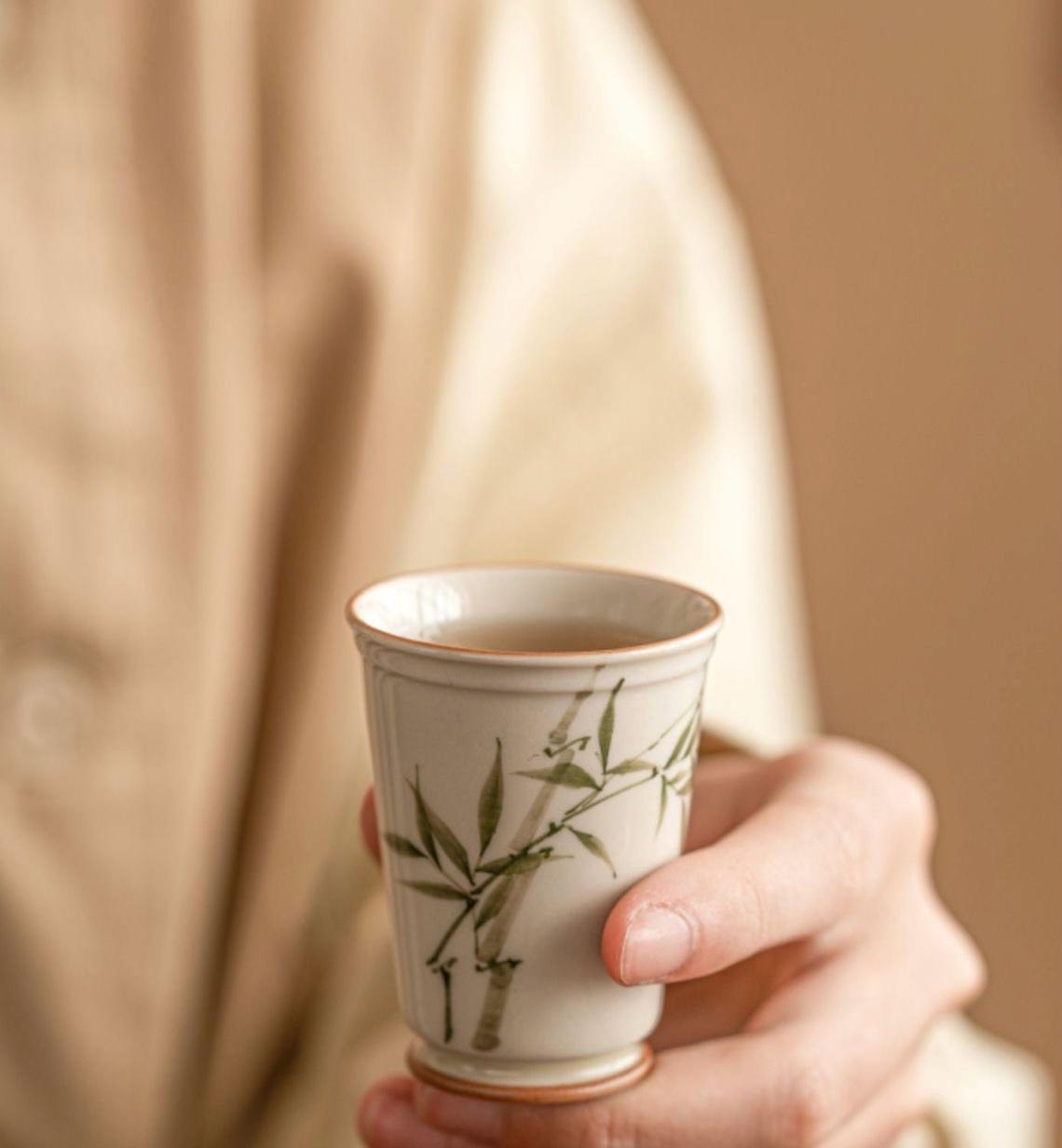 Refined and timeless, this mini tea cup features a graceful bamboo motif that brings a calm, scholarly beauty to the tea table. The softly flared silhouette, delicate footed base, and subtle earthy rim accents create an elegant balance between simplicity and traditional charm. Its understated design makes it especially appealing for those who appreciate classic tea ware with a serene, artistic touch.